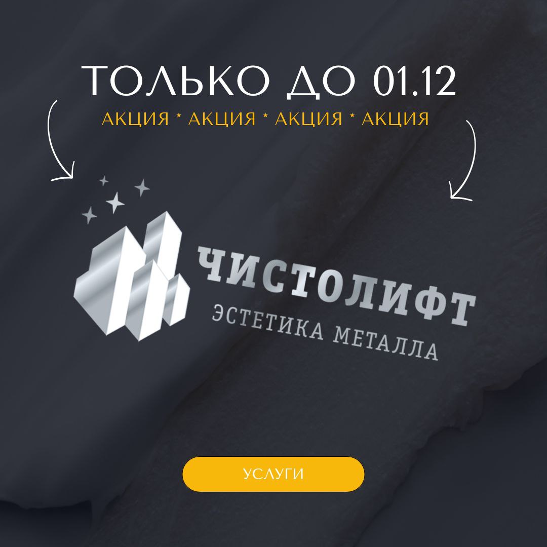 Команда ЧИСТОЛИФТ идёт навстречу заказчикам! Предлагаем не откладывать и прямо сейчас провести комплексное восстановление металлического покрытия от следов эксплуатации, а также обработать конструкцию защитой металлической поверхности с пролонгированным эффектом.