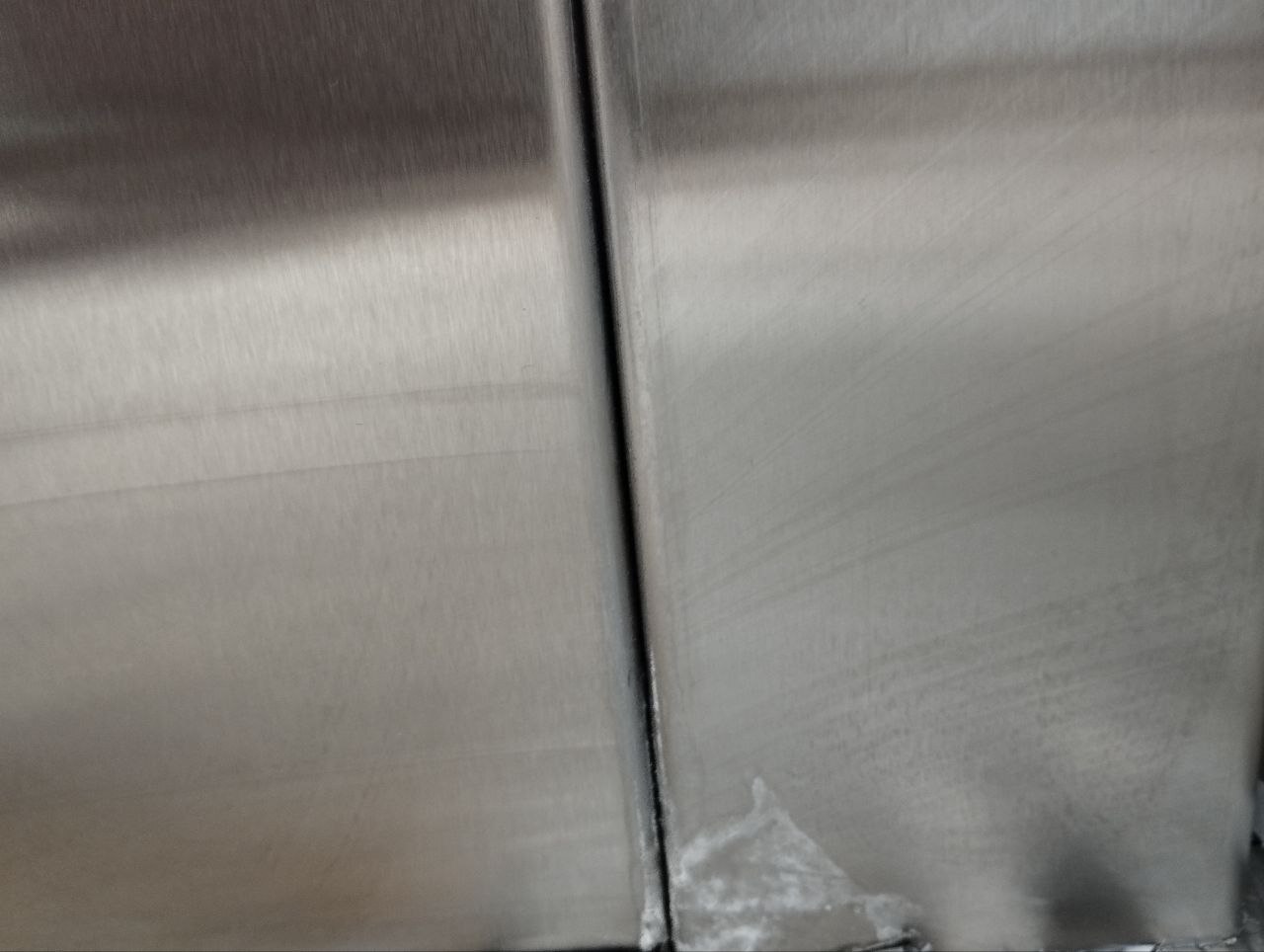 Нарушение технологии очистки металлического покрытия приводит к обширному повреждению внешнего слоя: потемнениям, нарушению линий полировки, ржавым разводам, потертостям от локального удаления следов пленки, клея и скотча. Постепенно в царапинах и потертостях скапливается влага и остатки чистящих средств, провоцируя коррозию и разрушение.