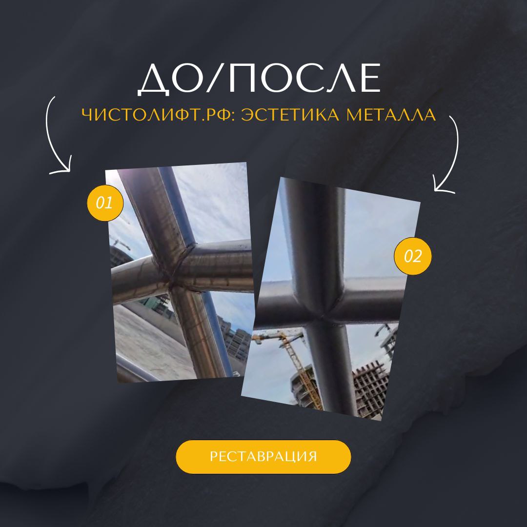 Восстановления металлического покрытия по методике ЧИСТОЛИФТ не требует демонтажа: заказчик заведомо экономит на переустановке элементов, а темп работы не снижается. Технология ЧИСТОЛИФТ помогла оперативно убрать следы ржавчины и потемнения на металле. Щадящее воздействие не повреждает структуру металлической поверхности. Дополнительная защита металлического покрытия с пролонгированным эффектом обеспечит безопасную эксплуатацию каркаса даже в условиях обильных осадков.